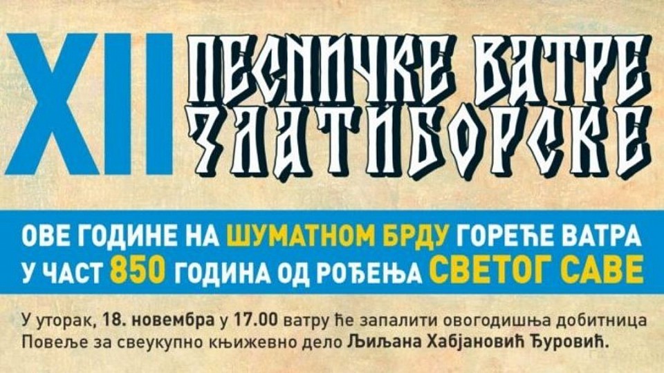 Традиционална манифестација „Песничке ватре златиборске“ у част 850 година од рођења Светог Саве биће одржана у уторак 18. новембра.