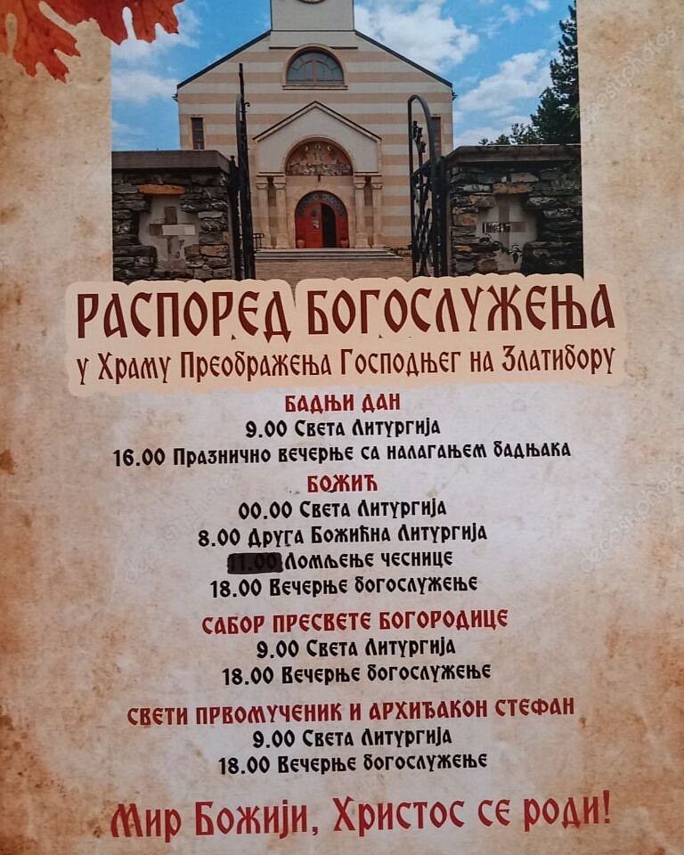 Распоред богослужења у храму Преображења Господњег на Златибору